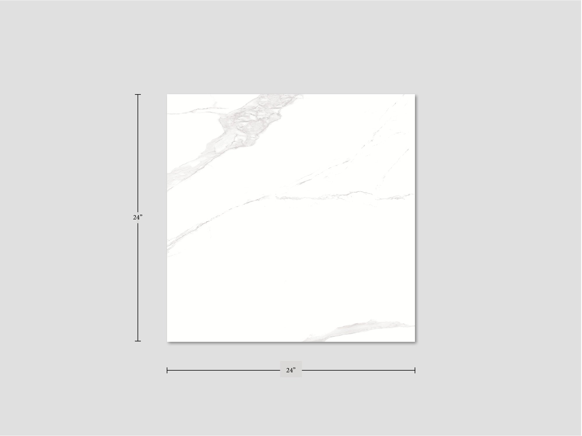 The 24''x24'' Statuario Goya tiles offer a sophisticated matte finish and the timeless elegance of Statuario marble. At 8.5mm thick, these tiles provide excellent durability and a refined look. The square format and subtle matte surface make them perfect for creating a modern and elegant atmosphere in any space, suitable for both residential and commercial settings.